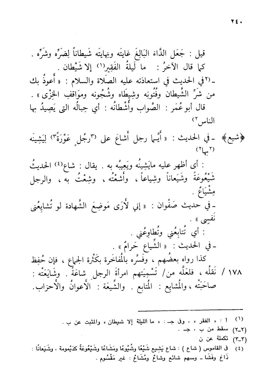 (شيع) - في الحديث: "أَيَّما رجل أَشاعَ على (3 رجُلٍ عَوْرَةً 3) لِيَشِينَه (2 بها 2)