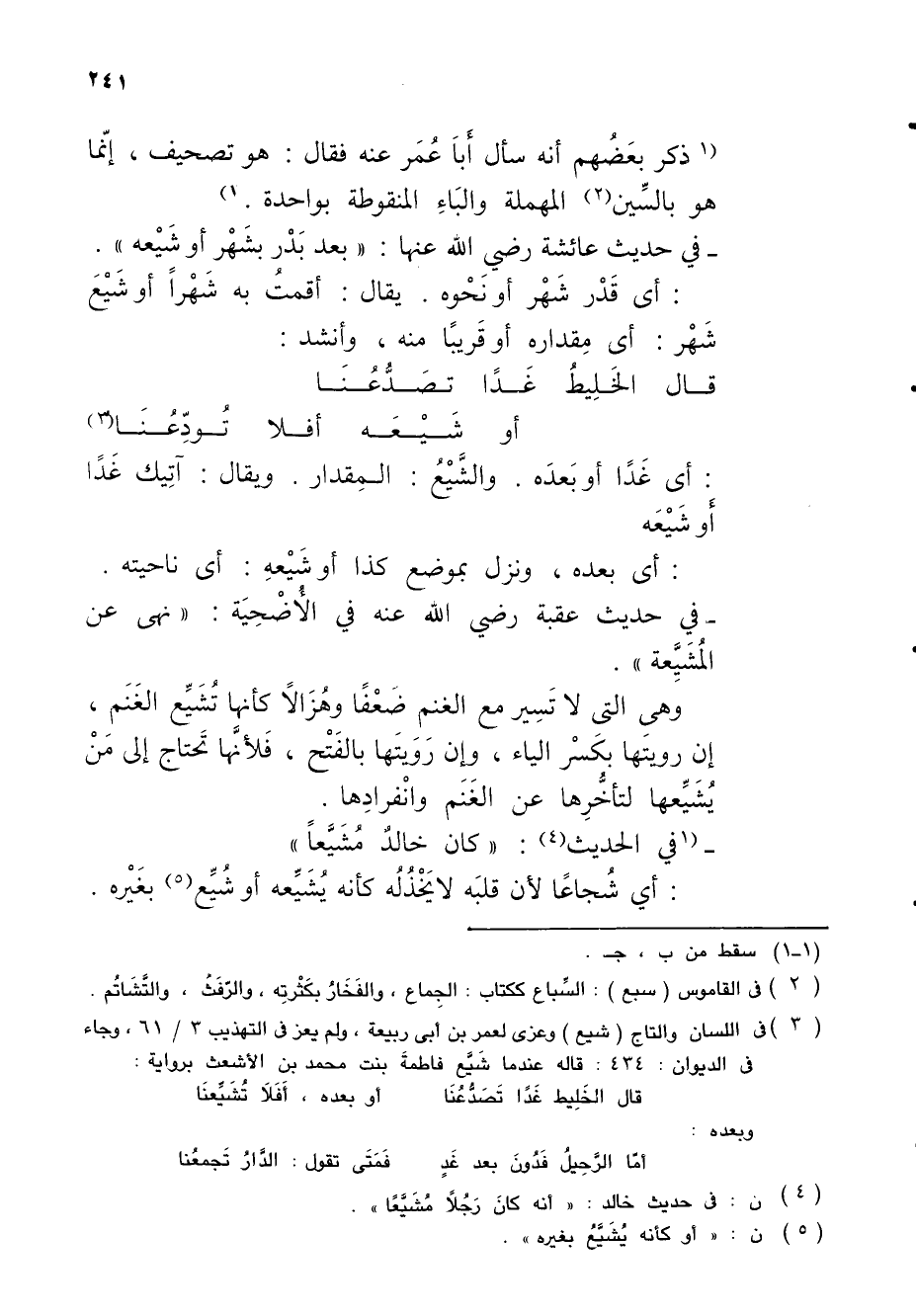 (¬3) في اللسان والتاج (شيع) وعزى لعمر بن أبى ربيعة، ولم يعز في التهذيب 3/ 61، وجاء في الديوان: 434: قاله عندها شَيَّع فاطمةَ بنت محمد بن الأشعث برواية: