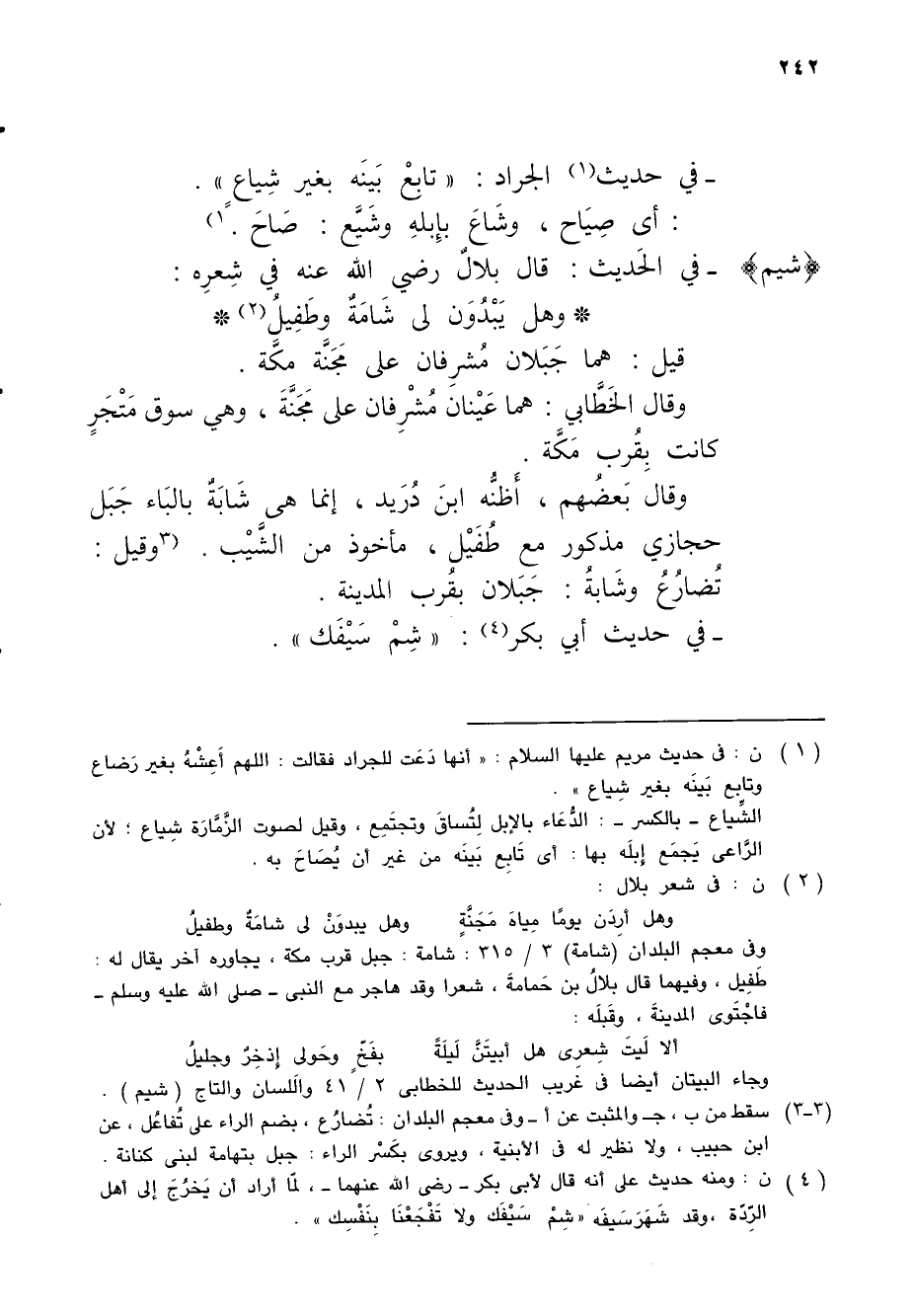 وفي معجم البلدان (شامة) 3/ 315: شامة: جبل قرب مكة، يجاوره آخر يقال له: طَفِيل، وفيهما قال بلالُ بن حَمامةَ، شعرا وقد هاجر مع النبى - صلى الله عليه وسلم - فاجْتَوى المدينةَ، وقَبلَه: