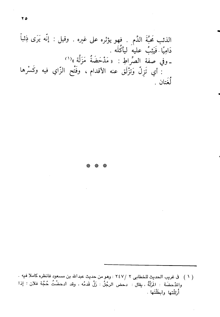 (¬1) في غريب الحديث للخطابى 2/ 247: وهو من حديث عبد الله بن مسعود فانظره كاملا فيه. والمدْحضَة: المَزَلَّةُ، يقال: دحض الرجُلُ: زَلَّ قَدمُه، وقد أدحضْتُ حُجَّة فلان. إذا أزللْتها وأبطَلْتَها.