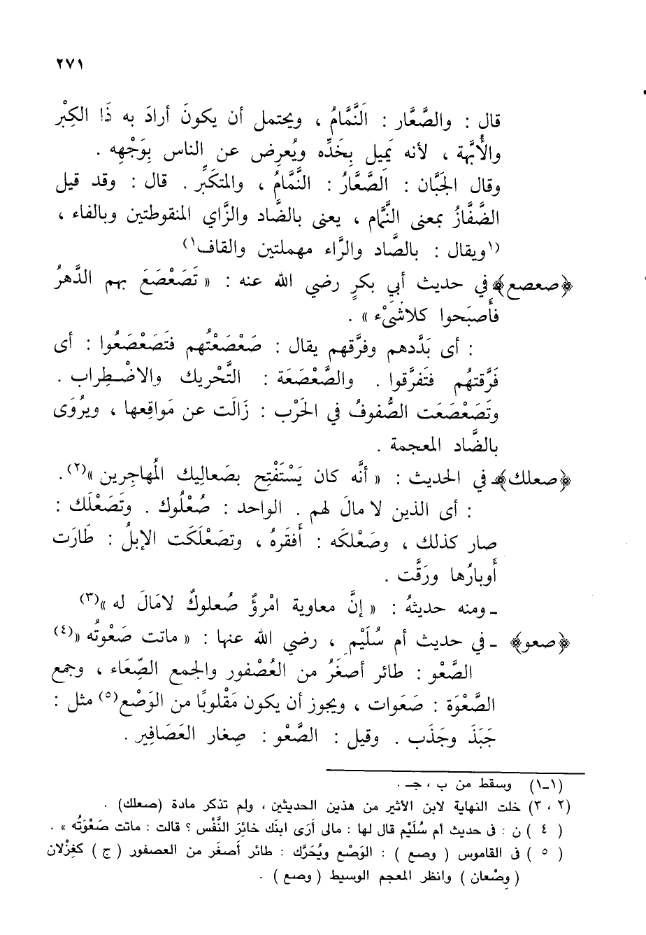 (¬3) خلت النهاية لابن الأثير من هذين الحديثين، ولم تذكر مادة (صعلك).