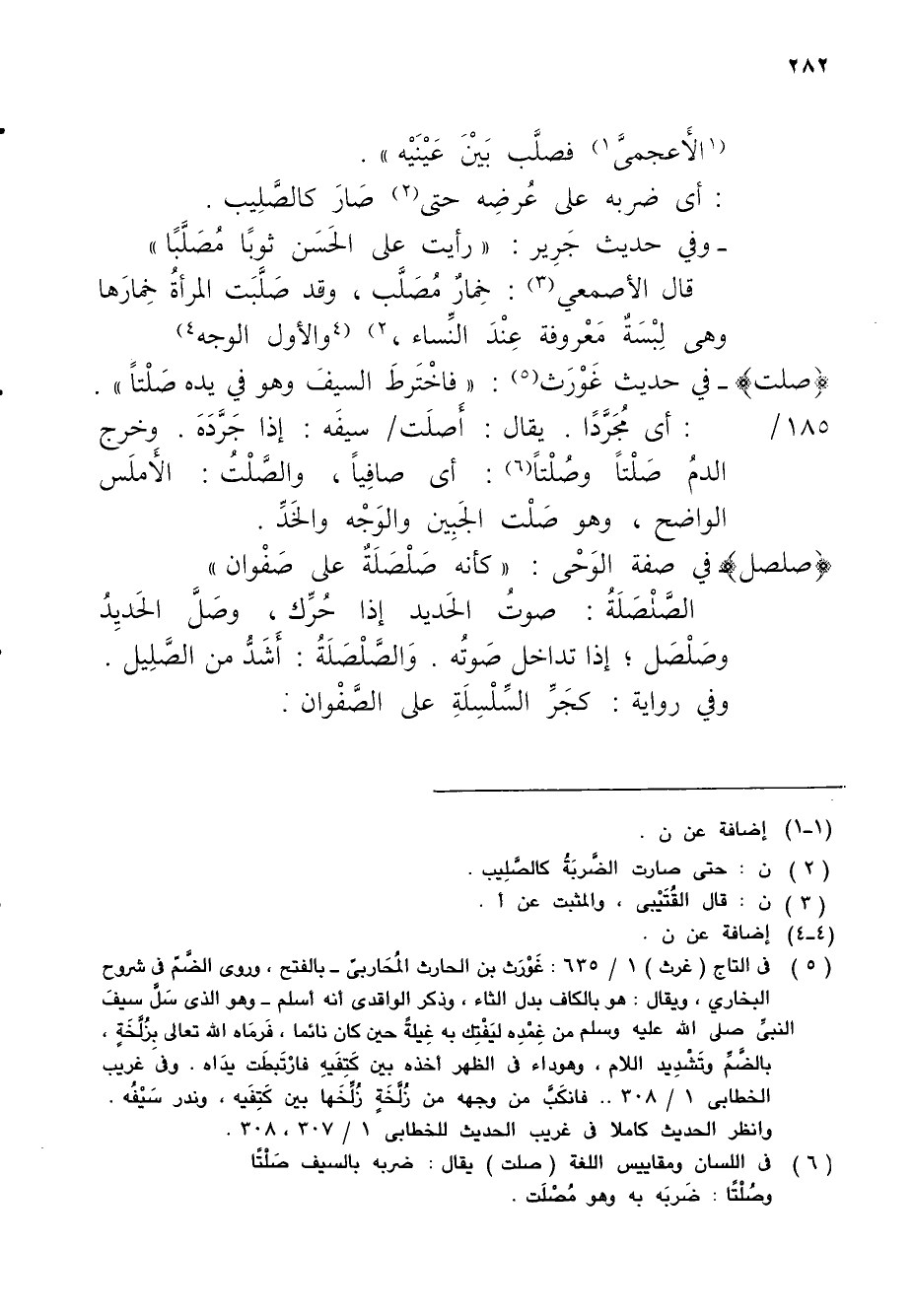 (¬6) في اللسان ومقاييس اللغة (صلت) يقال: ضربه بالسيف صَلْتًا