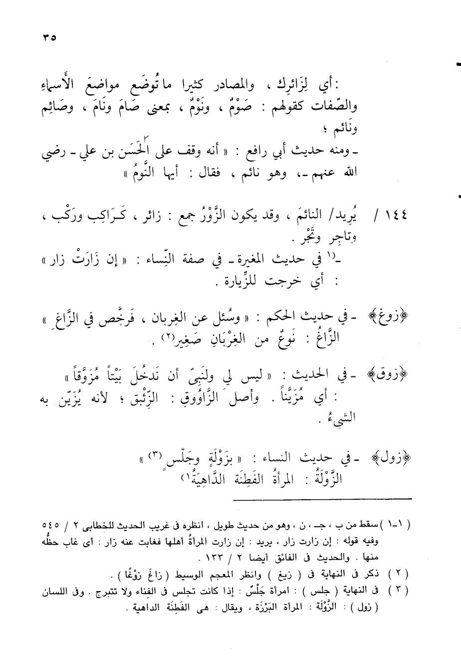(¬2) ذكر في النهاية في (زيغ) وانظر المعجم الوسيط (زاغَ زوْغًا).
