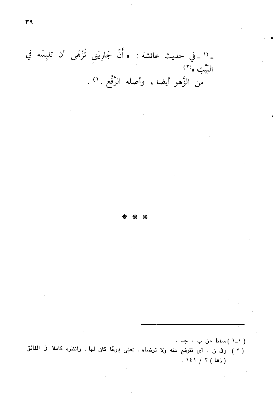 - (1 - في حديث عائشة: "أَنّ جَارِيَتىِ تُزْهَى أن تلبِسَه في البَيْتِ" (¬2)