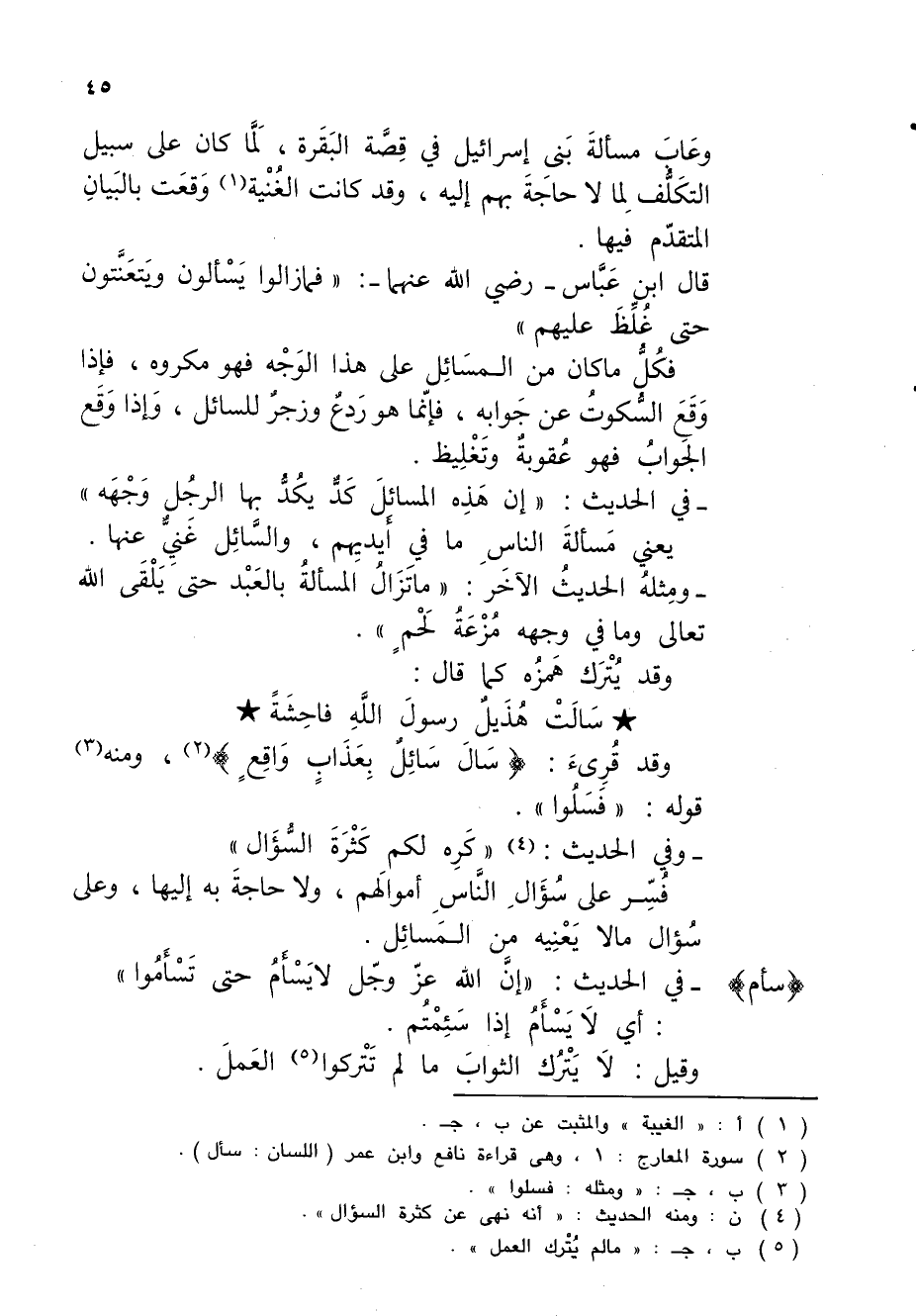 (¬4) ن: ومنه الحديث: "أنه نهى عن كثرة السؤال".