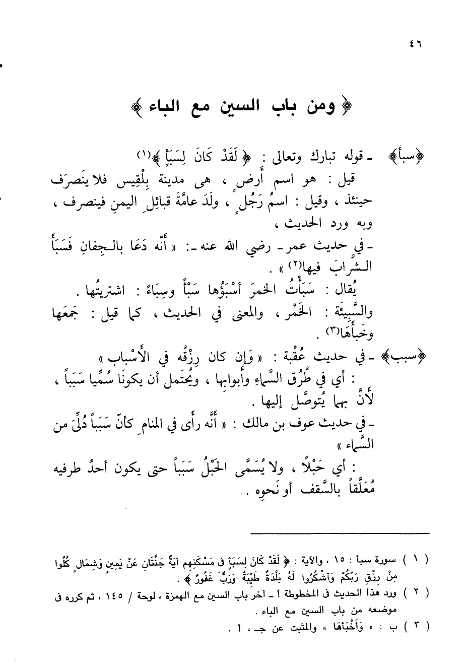 (¬2) ورد هذا الحديث في المخطوطة أ - آخر باب السين مع الهمزة، لوحة/ 145، ثم كرره في موضعه من باب السين مع الباء.