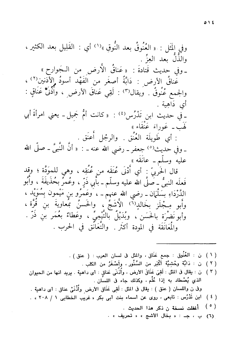 (¬3) ن: يقال في المثل: لَقِىَ عَنَاقَ الأرض، وأُذُنَى عَناقٍ: أي داهية. يريد أنها من الحيوان الذي يُصْطاد به إذا عُلِّم، وكذلك جاء في اللسان.
