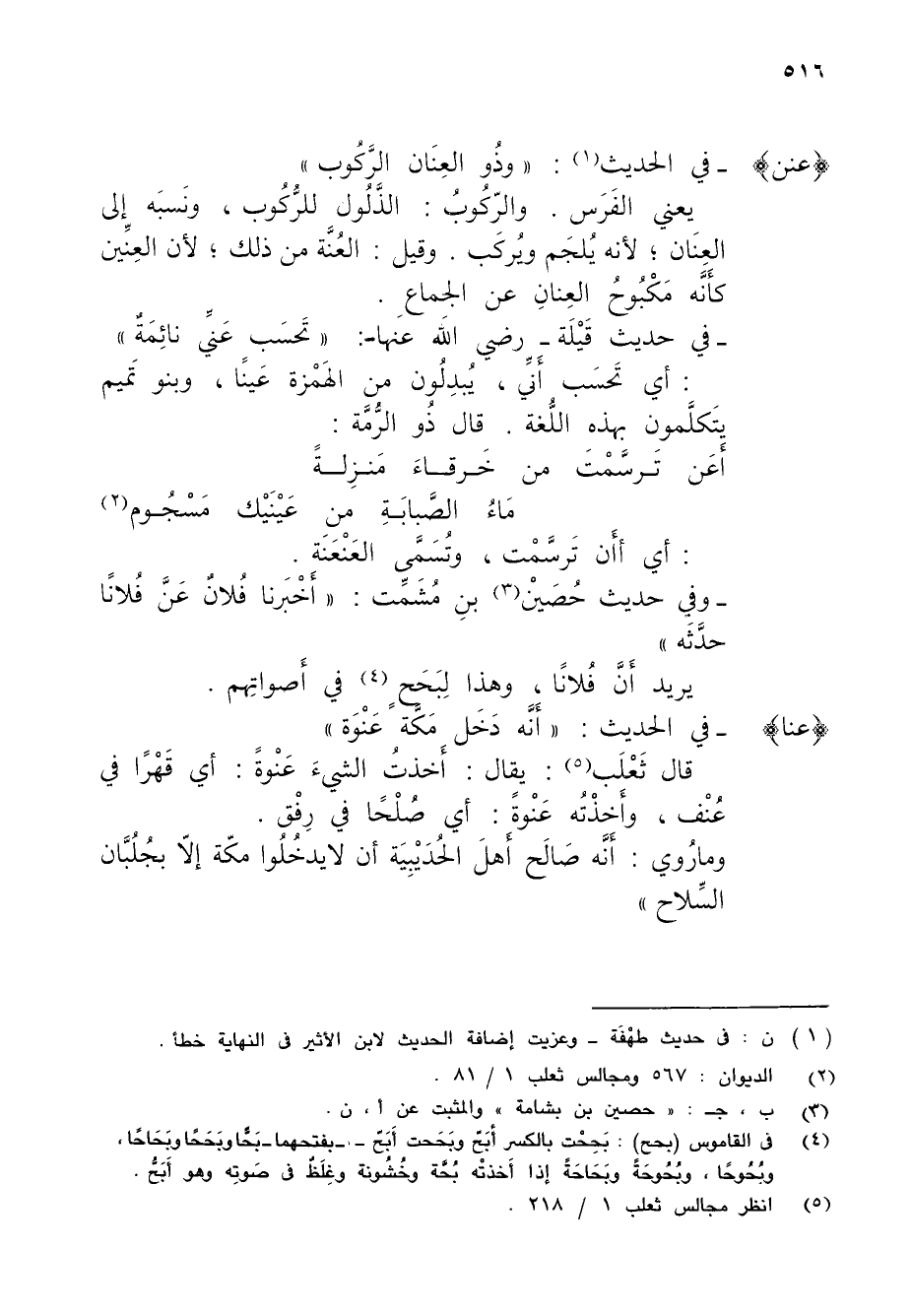 (عنن) - في الحديث (¬1): "وذُو العِنَان الرَّكُوب"