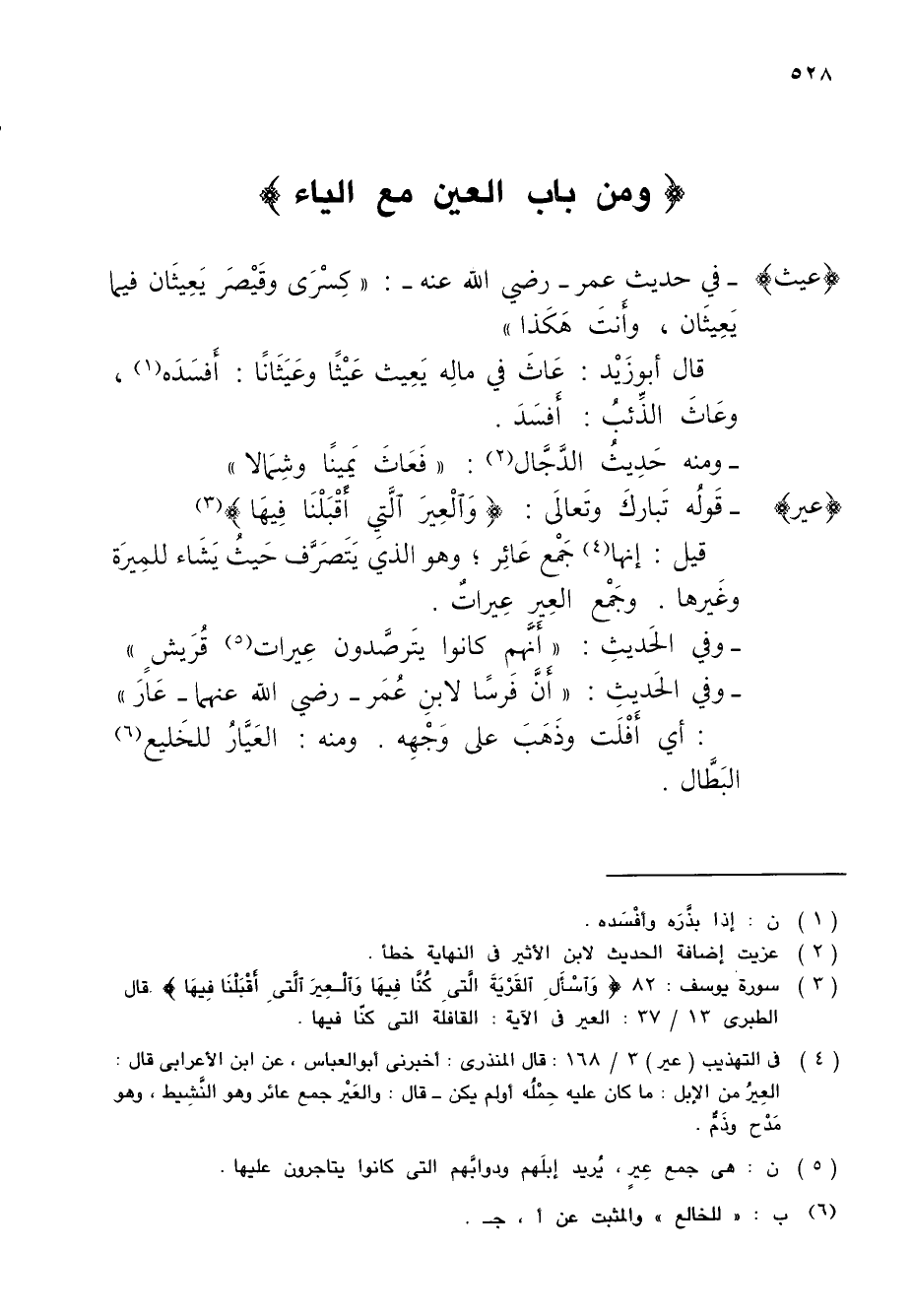 (¬3) سورة يوسف: 82 {وَاسْأَلِ القَرْيَةَ الَّتىِ كُنَّا فِيهَا وَالْعِيرَ الَّتىِ أَقْبَلْنَا فِيهَا} قال الطبرى 13/ 37: العير في الآية: القافلة التي كنّا فيها.