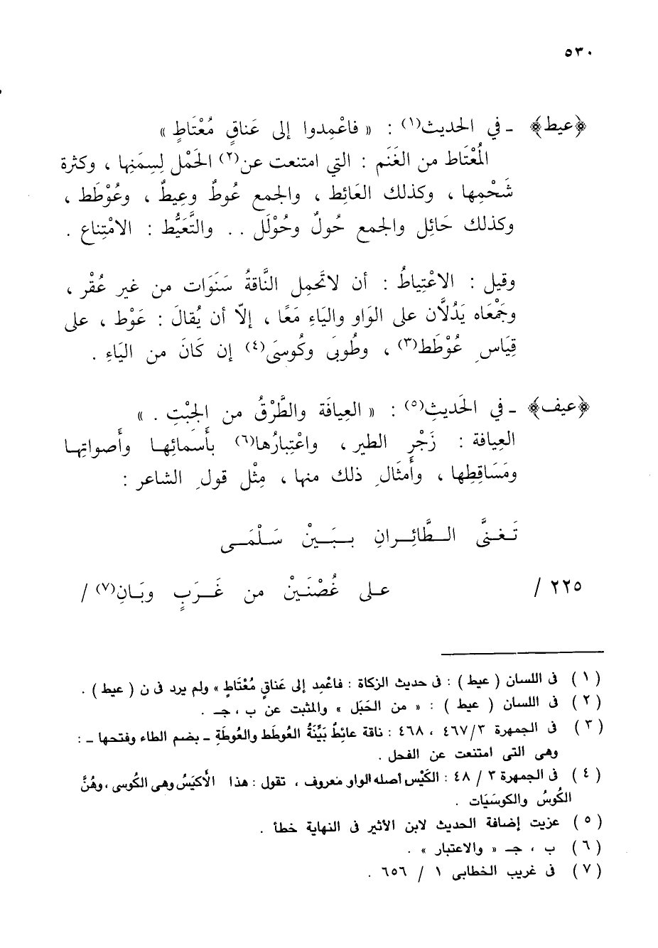 (¬1) في اللسان (عيط): في حديث الزكاة: فاعْمِد إلى عَناقٍ مُعْتَاطٍ" ولم يرد في ن (عيط).
