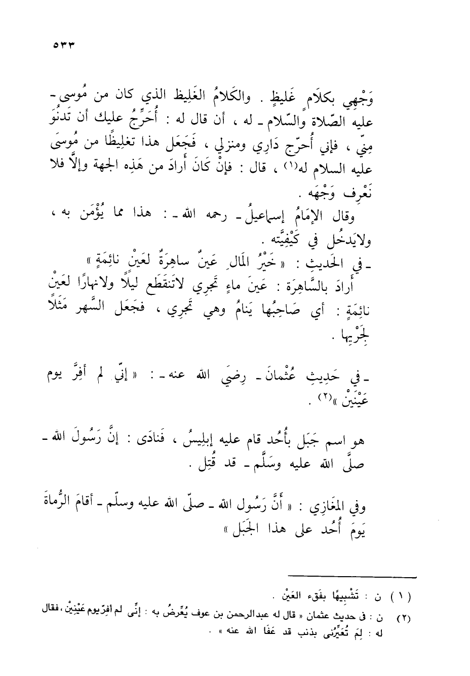 وقال الإمَامُ إسماعيلُ - رحمه الله -: هذا مما يُؤْمَن به، ولا يَدخُل في كَيْفِيَّته.