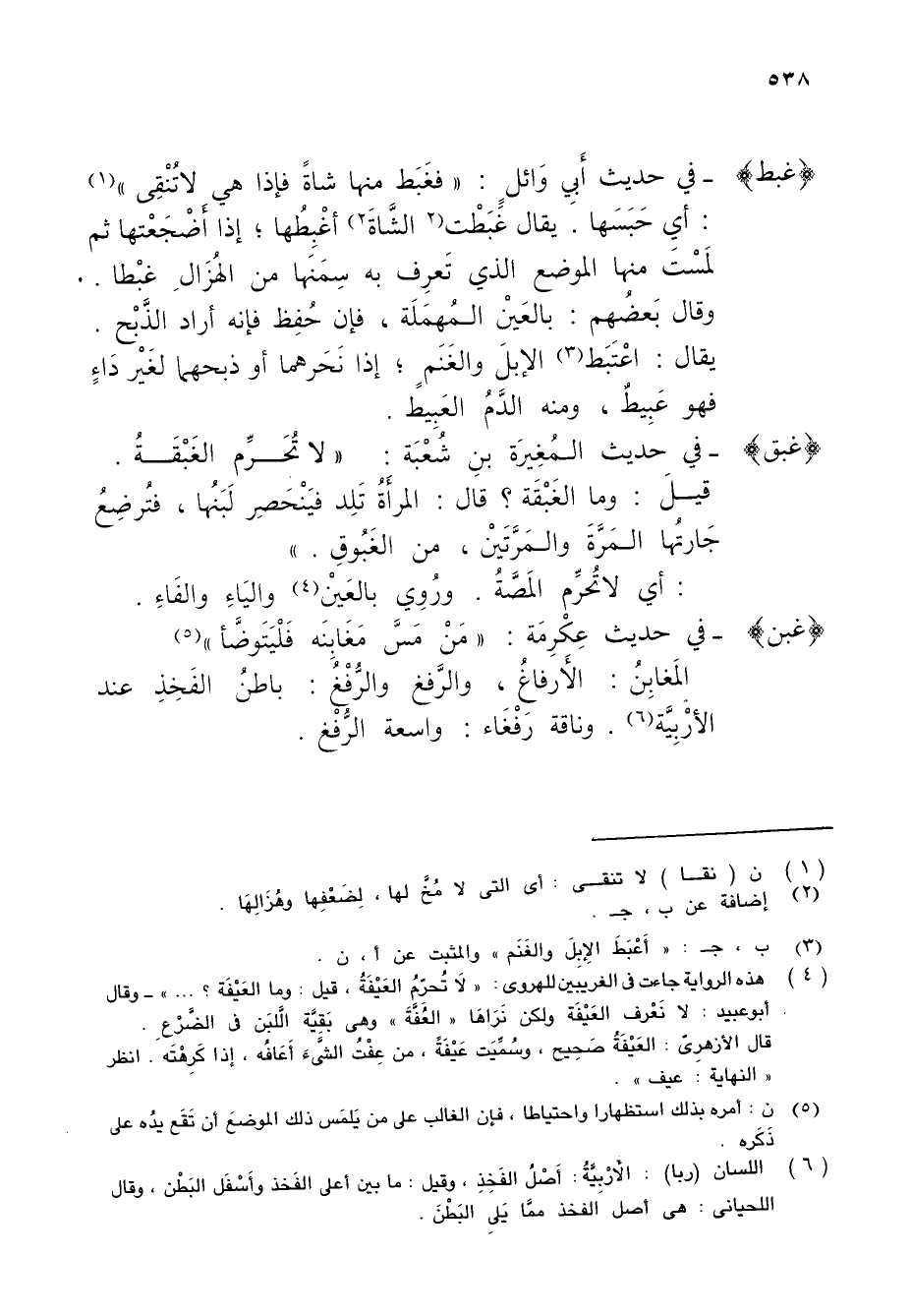 وقال بَعضُهم: بالعَيْن المُهمَلَة، فإن حُفِظ فإنه أراد الذَّبْح. يقال: اعْتَبَط (¬3) الإبلَ والغَنَمٍ؛ إذا نَحَرهما أو ذبحهما لغَيْر دَاءٍ فهو عَبِيطٌ، ومنه الدَّمُ العَبِيط.