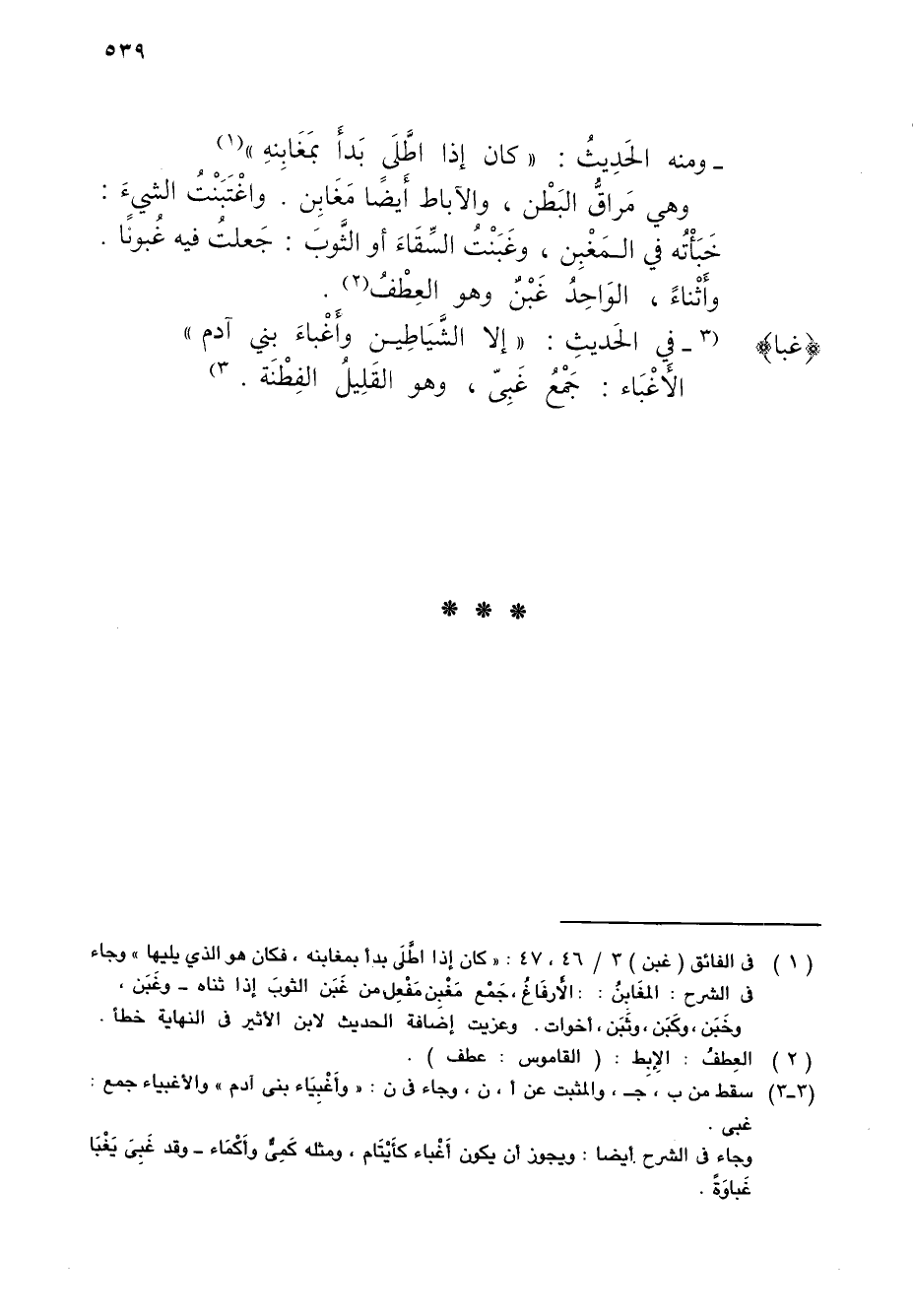 (¬1) في الفائق (غبن) 3/ 46، 47: "كان إذا اطَّلَى بدأ بمغابنه، فكان هو الذي يليها" وجاء في الشرح: المغَابِنُ: الأَرفَاغُ، جَمْع مَغْبِن مَفْعِل من غَبَن الثوبَ إذا ثناه - وغَبَن، وخَبَن، وكَبَن، وثَبَن، أخوات. وعزيت إضافة الحديث لابن الأثير في النهاية خطأ.