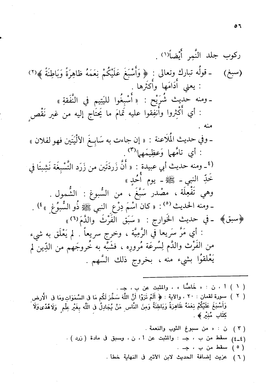 (سبغ) - قولُه تبارك وتعالى: {وَأَسْبَغَ عَلَيْكُمْ نِعَمَهُ ظَاهِرَةً وَبَاطِنَةً} (¬2): يعني أدَامَها وأَكَثرها.