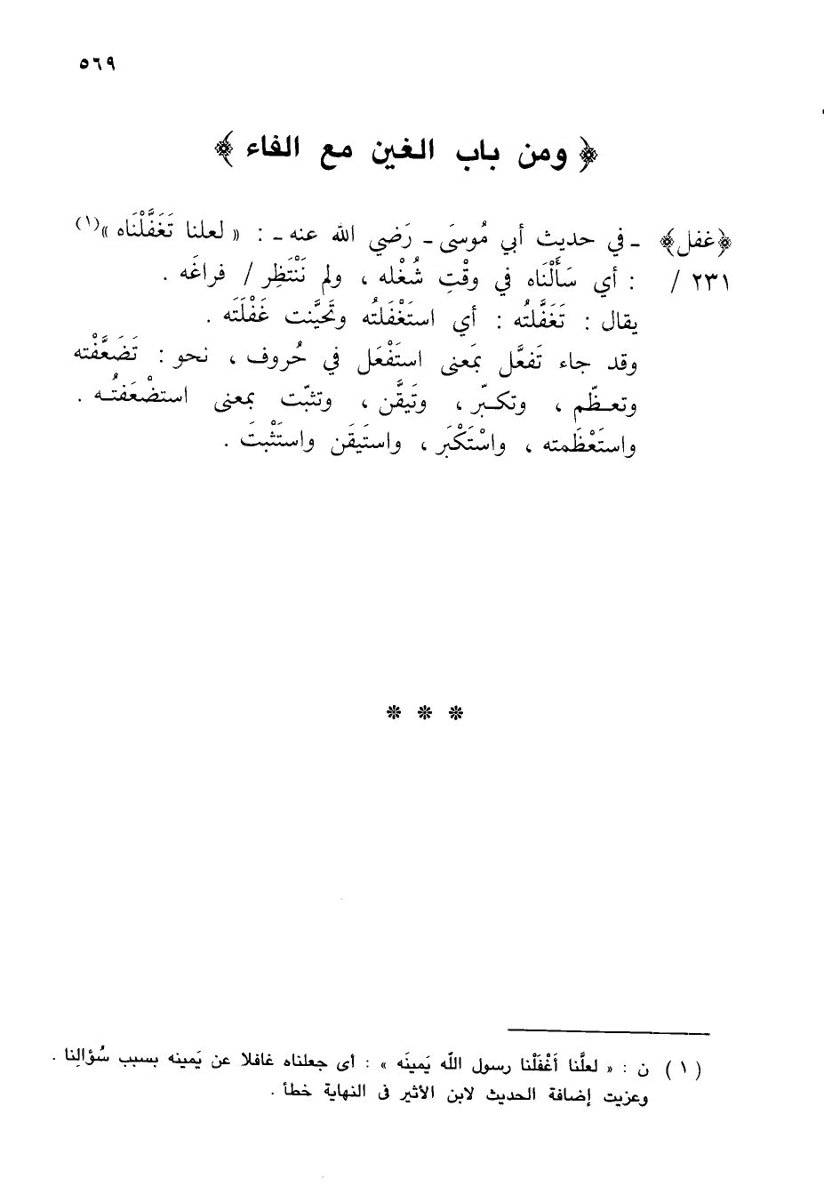(غفل) - في حديث أبي مُوسىَ - رَضي الله عنه -: "لعلنا تَغَفَّلْنَاه" (¬1)