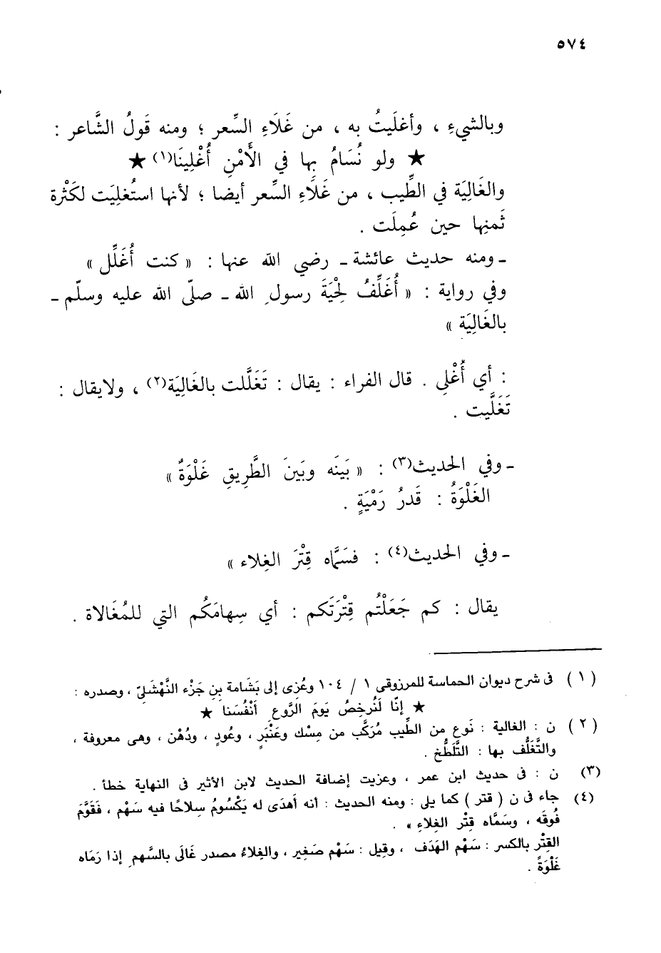 وبالشيءِ، وأغلَيتُ به، من غَلَاءِ السِّعر؛ ومنه قَولُ الشَّاعر: