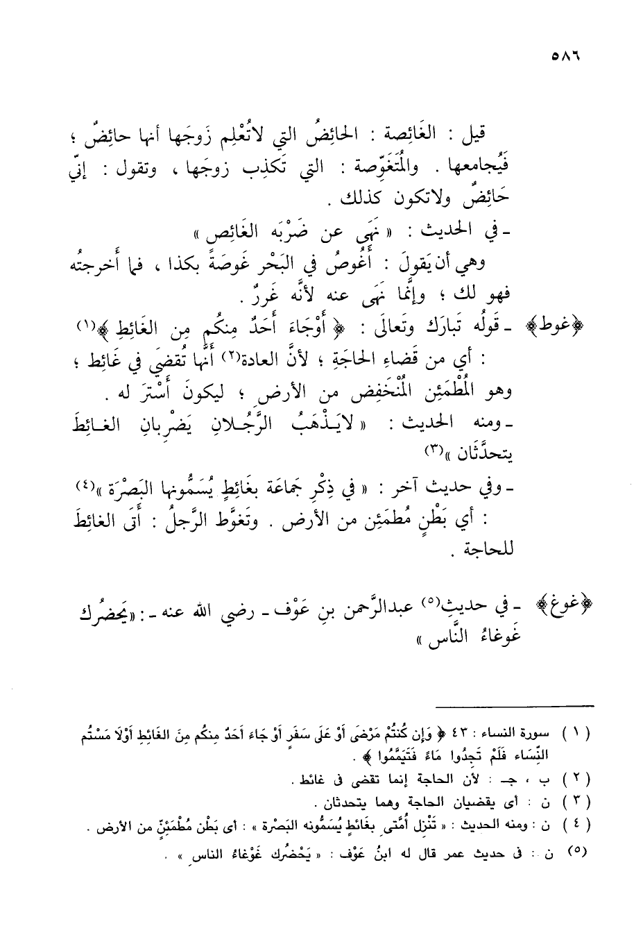 (غوط) - قَولُه تَبارَك وتَعالَى: {أَوْ جَاءَ أَحَدٌ مِنْكُمْ مِنَ الْغَائِطِ} (¬1)