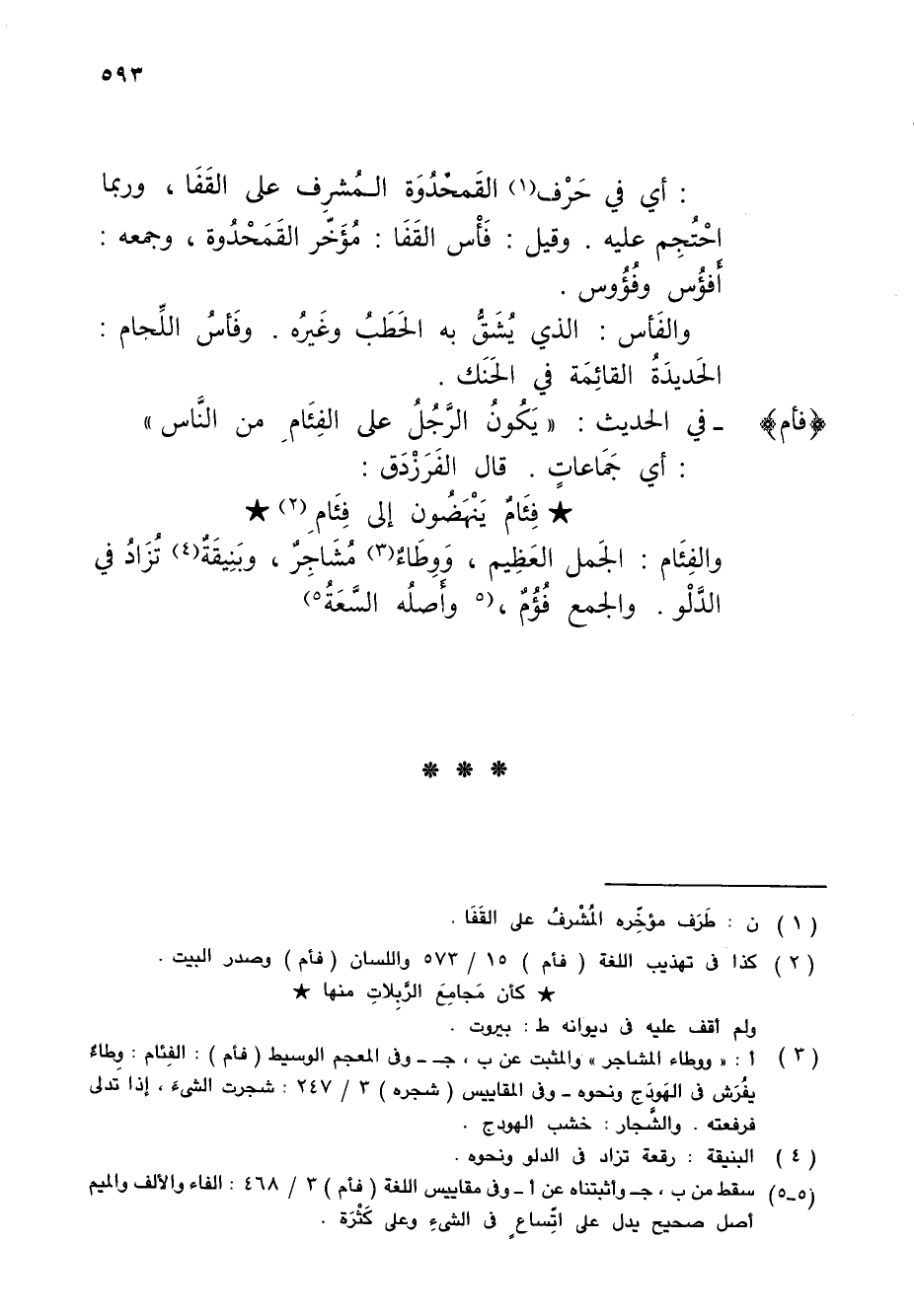 (5 - 5) سقط من ب، جـ وأثبتناه عن أ - وفي مقاييس اللغة (فأم) 3/ 468: الفاء والألف والميم أصل صحيح يدل على اتِّساعٍ في الشىءِ وعلى كَثْرَة.