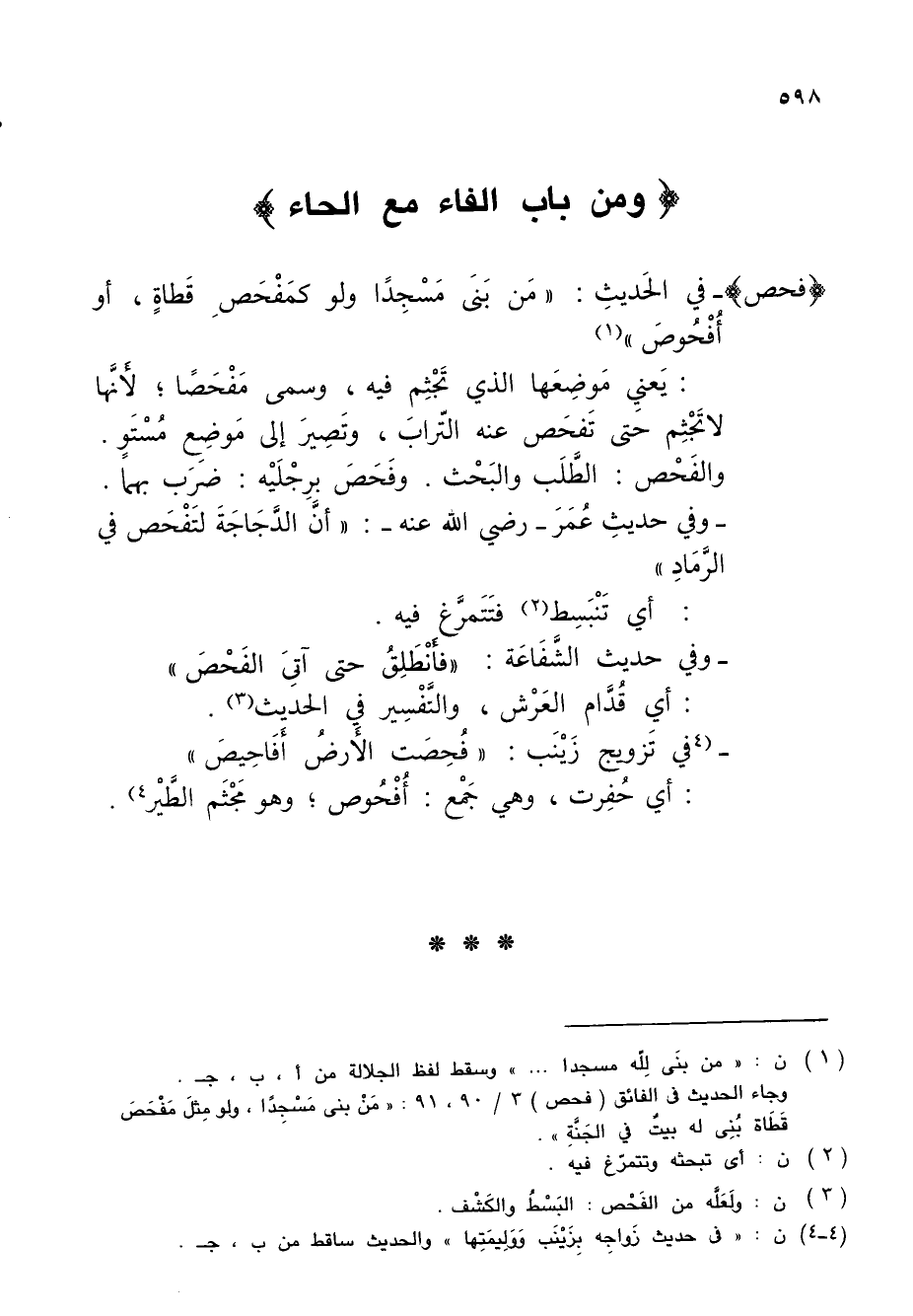 (¬3) ن: ولَعَلَّه من الفَحْص: البَسْطُ والكَشْف.