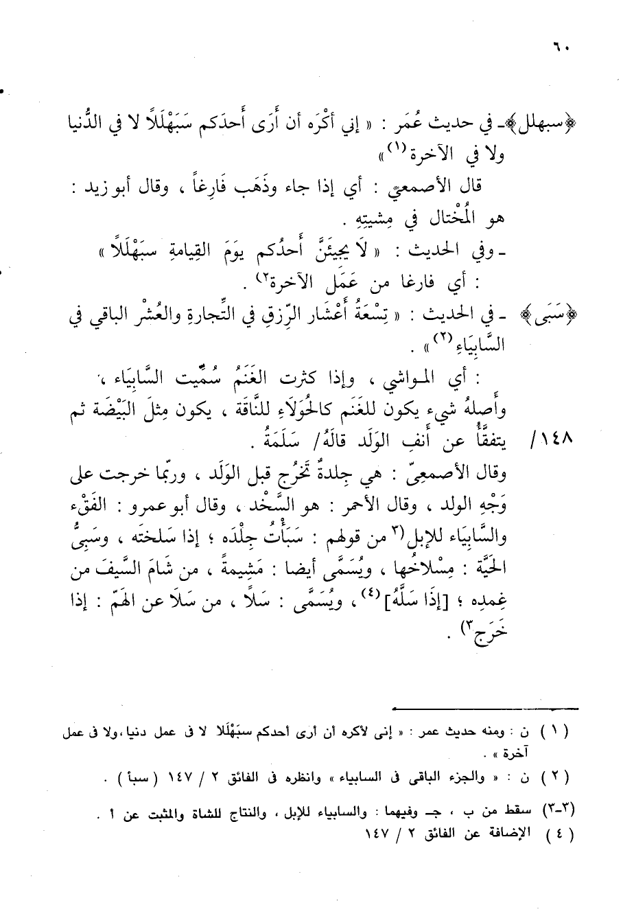 (¬2) ن: "والجزء الباقى في السابياء" وانظره في الفائق 2/ 147 (سبأ).