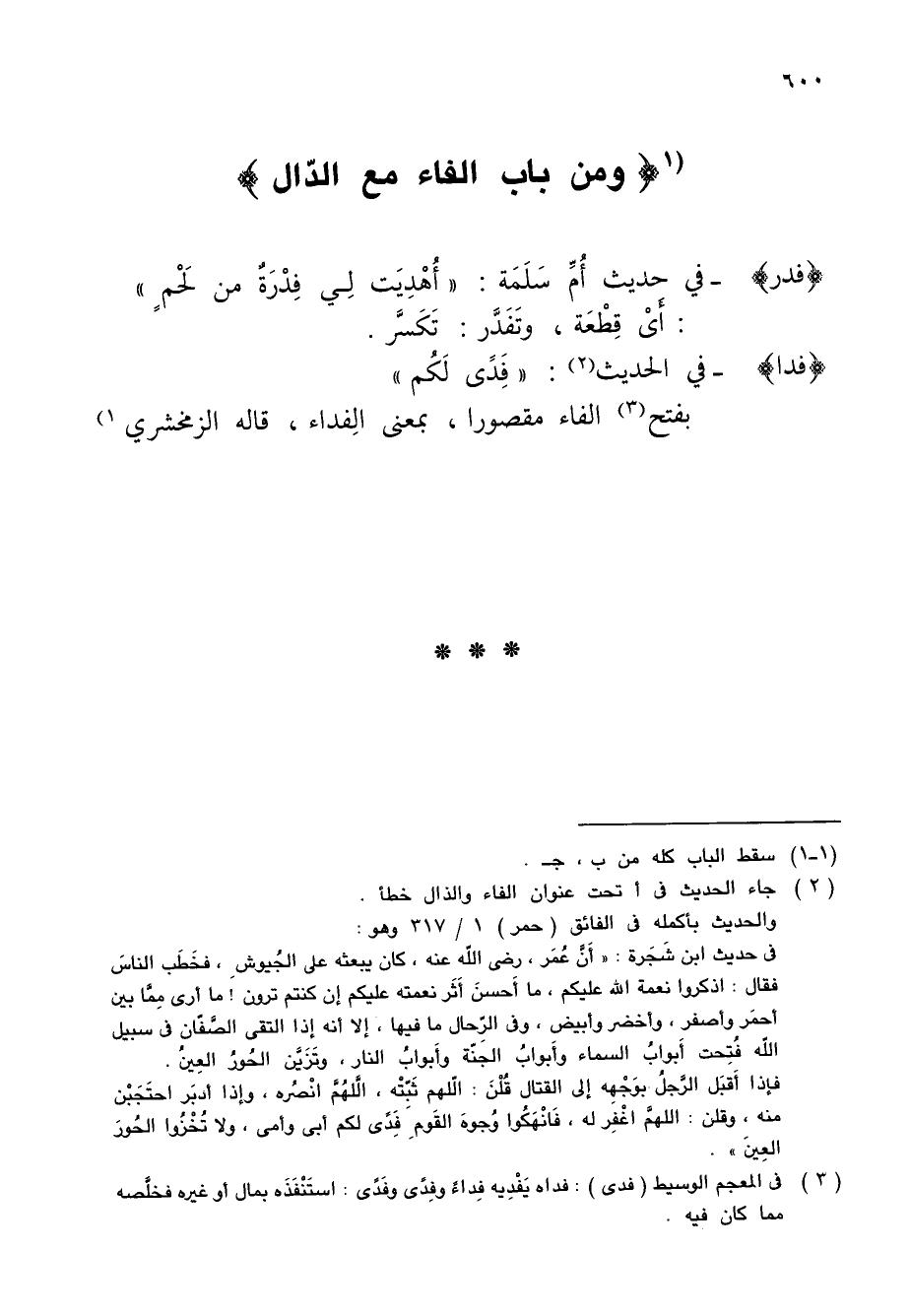 (¬2) جاء الحديث في أتحت عنوان الفاء والذال خطأ.