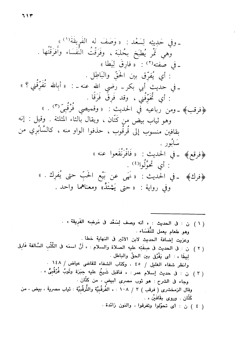 (فرقب) - ومن رباعيه في الحديث: "وقميصي فُرْقُبِىّ (¬3)."