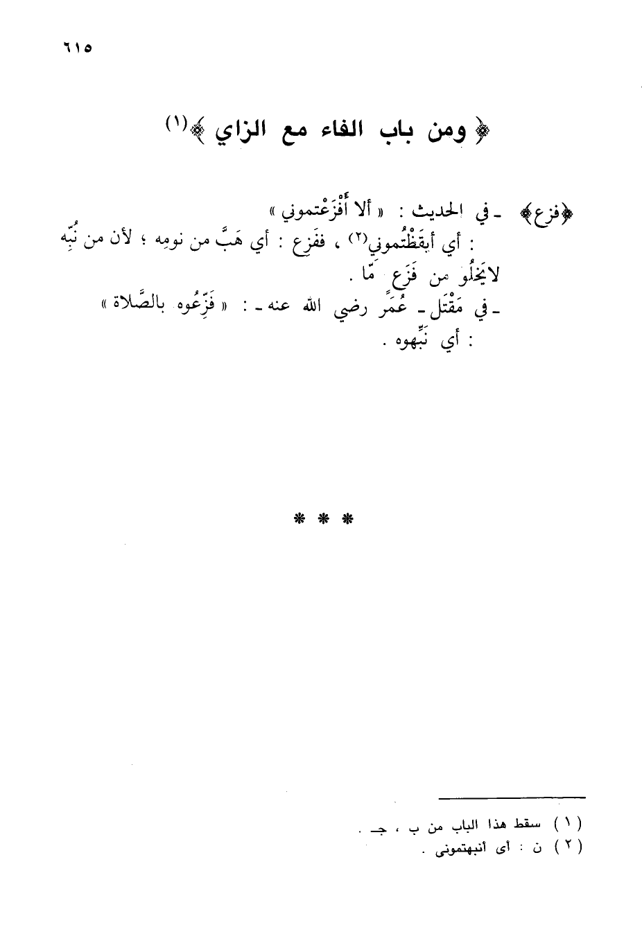 (فزع) - في الحديث: "ألا أَفْزَعْتموني"