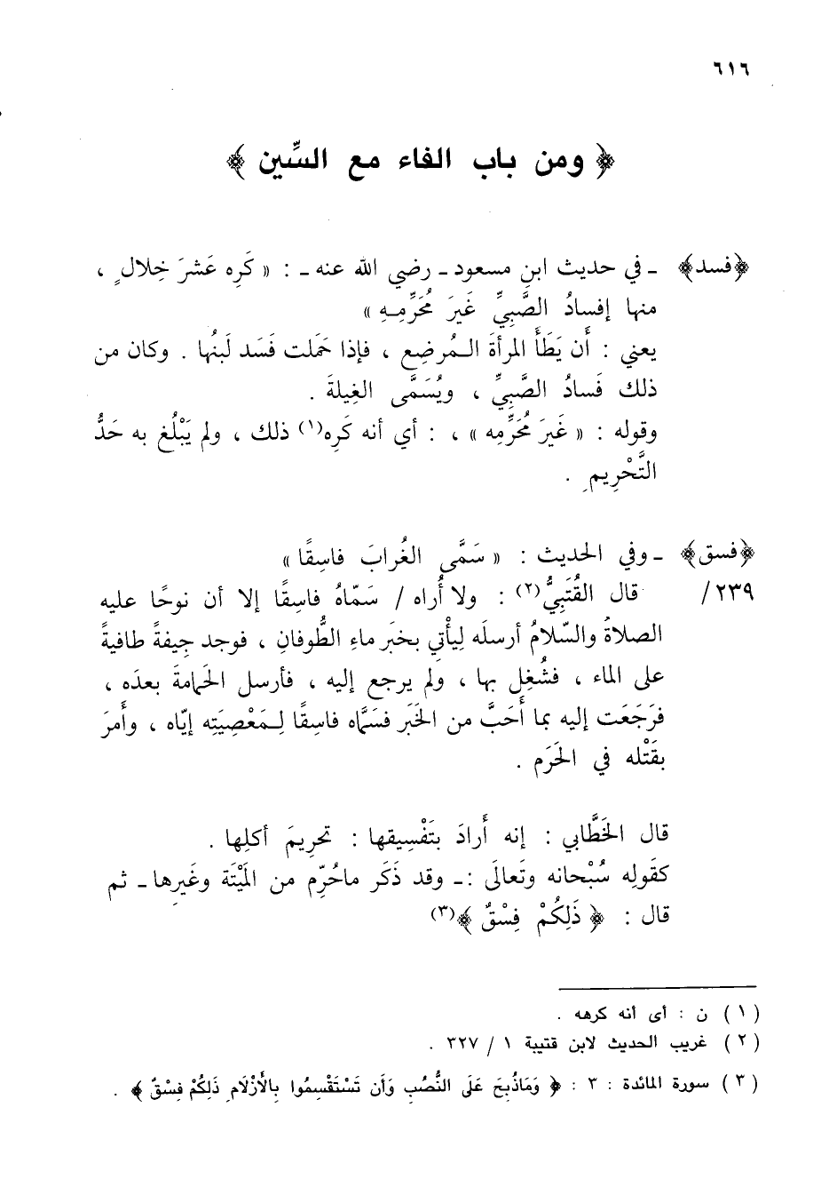 (¬2) غريب الحديث لابن قتيبة 1/ 327.