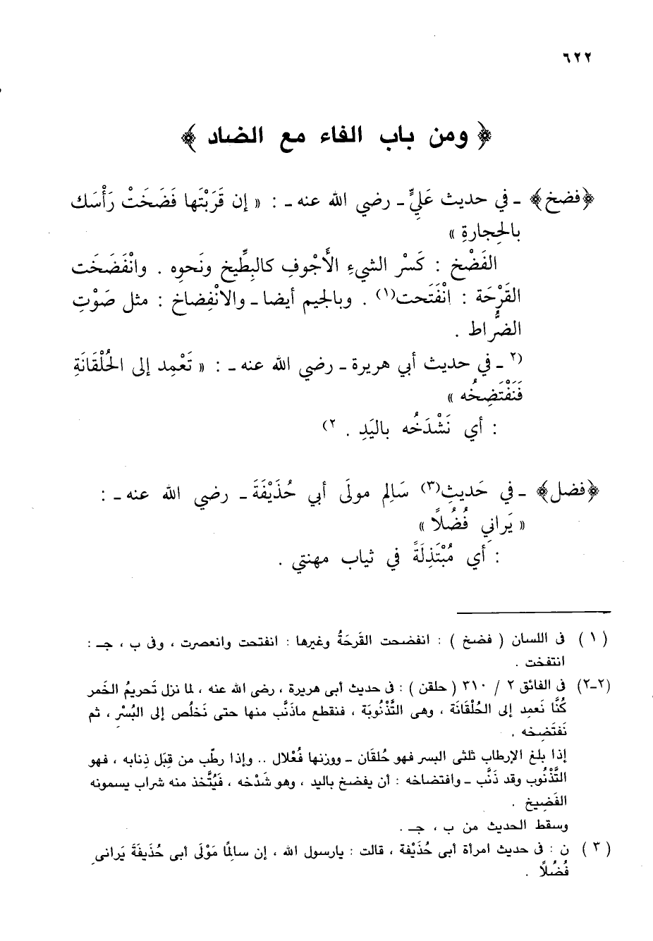 (¬3) ن: في حديث امرأة أبى حُذَيْفة، قالت: يا رسول الله، إن سالِمًا مَوْلَى أبى حُذَيفَةَ يَرانِى فُضُلاً.