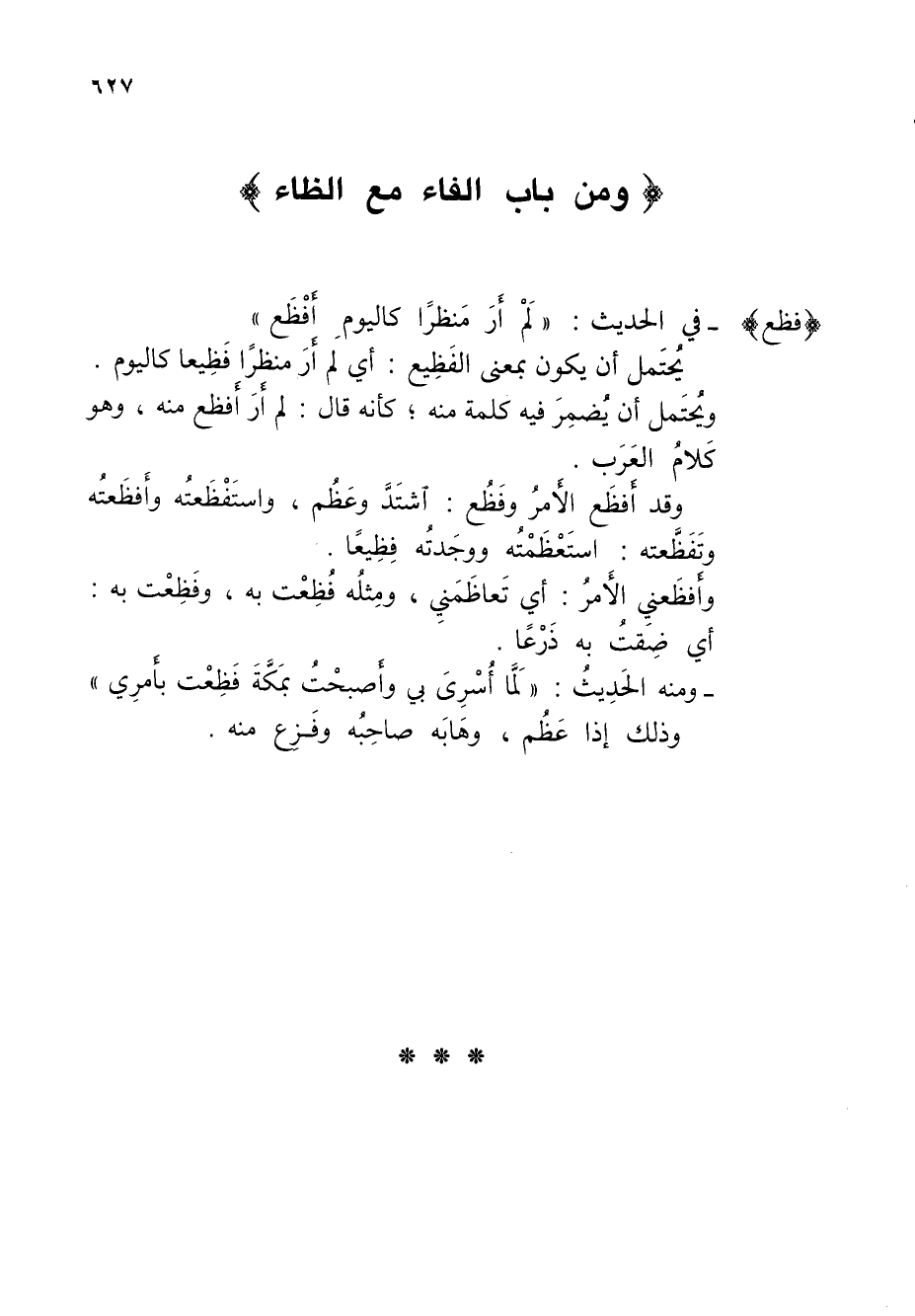 (فظع) - في الحديث: "لَمْ أَرَ مَنظرًا كاليوم أَفْظَع"