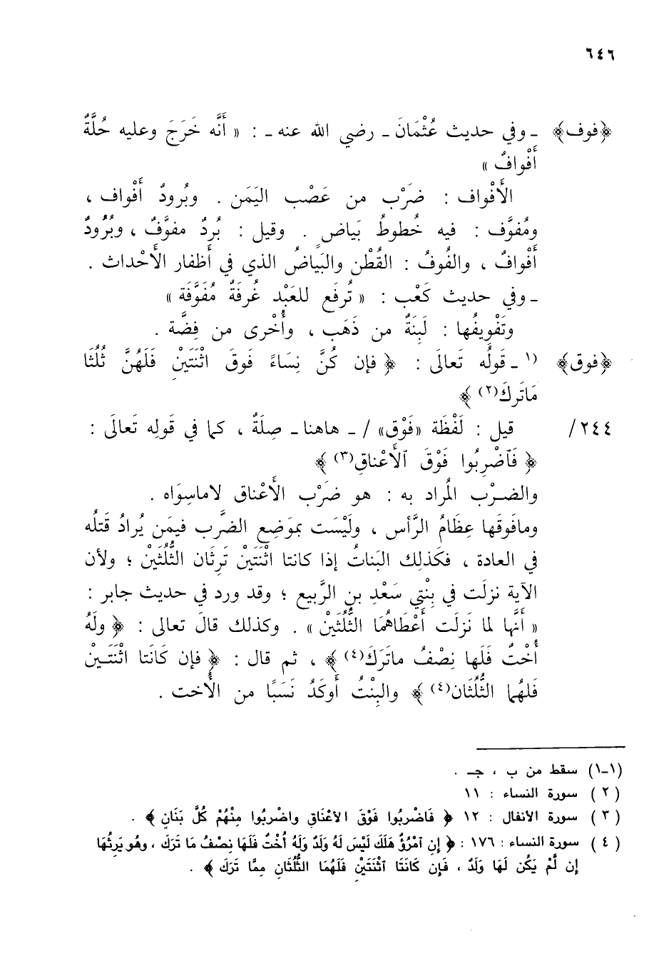 (فوق) (1 - قَولُه تَعالَى: {فإن كُنَّ نِسَاءً فَوقَ اثْنَتَيْنِ فَلَهُنَّ ثُلُثَا مَا تَركَ} (¬2)