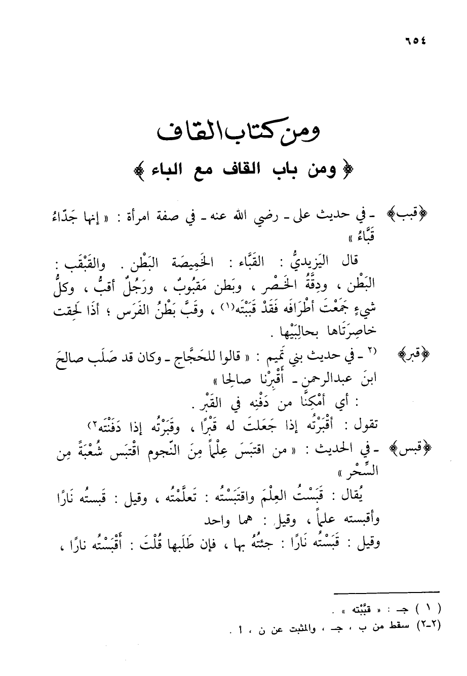 (قبب) - في حديث على - رضي الله عنه - في صفة امرأة: "إنها جَدّاءُ قَبَّاءُ"