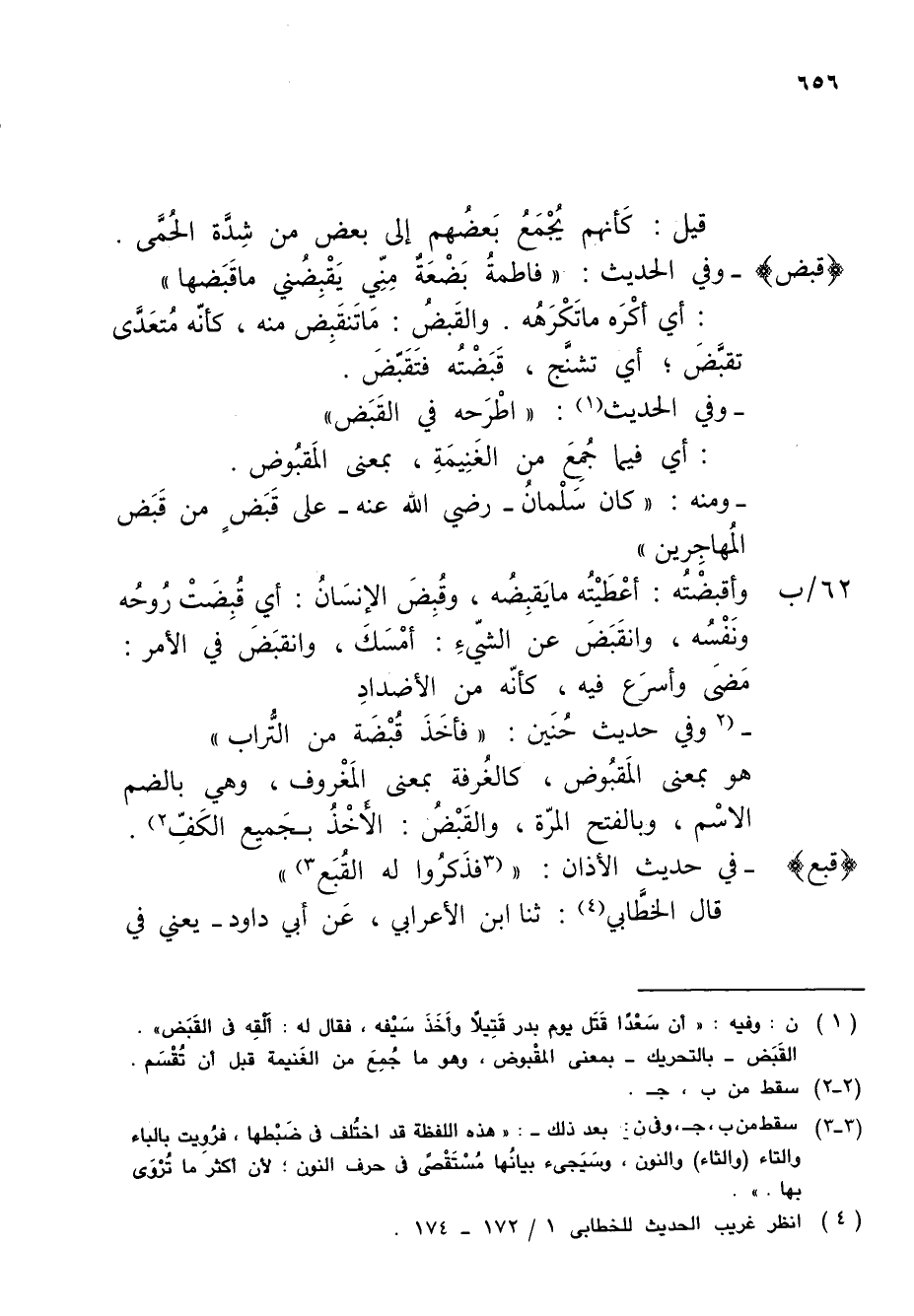 (¬4) انظر غريب الحديث للخطابى 1/ 172 - 174.