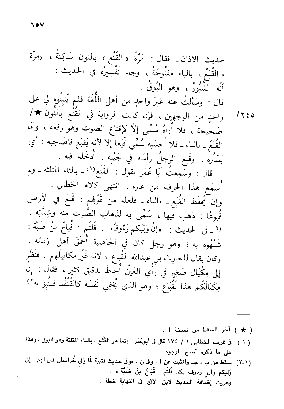(¬1) في غريب الخطابى 1/ 174 قال لى أبو عُمَر، إنما هو القَثَع، بالثاء المثلثة وهو البوق، وهذا على ما ذكره أصح الوجوه.