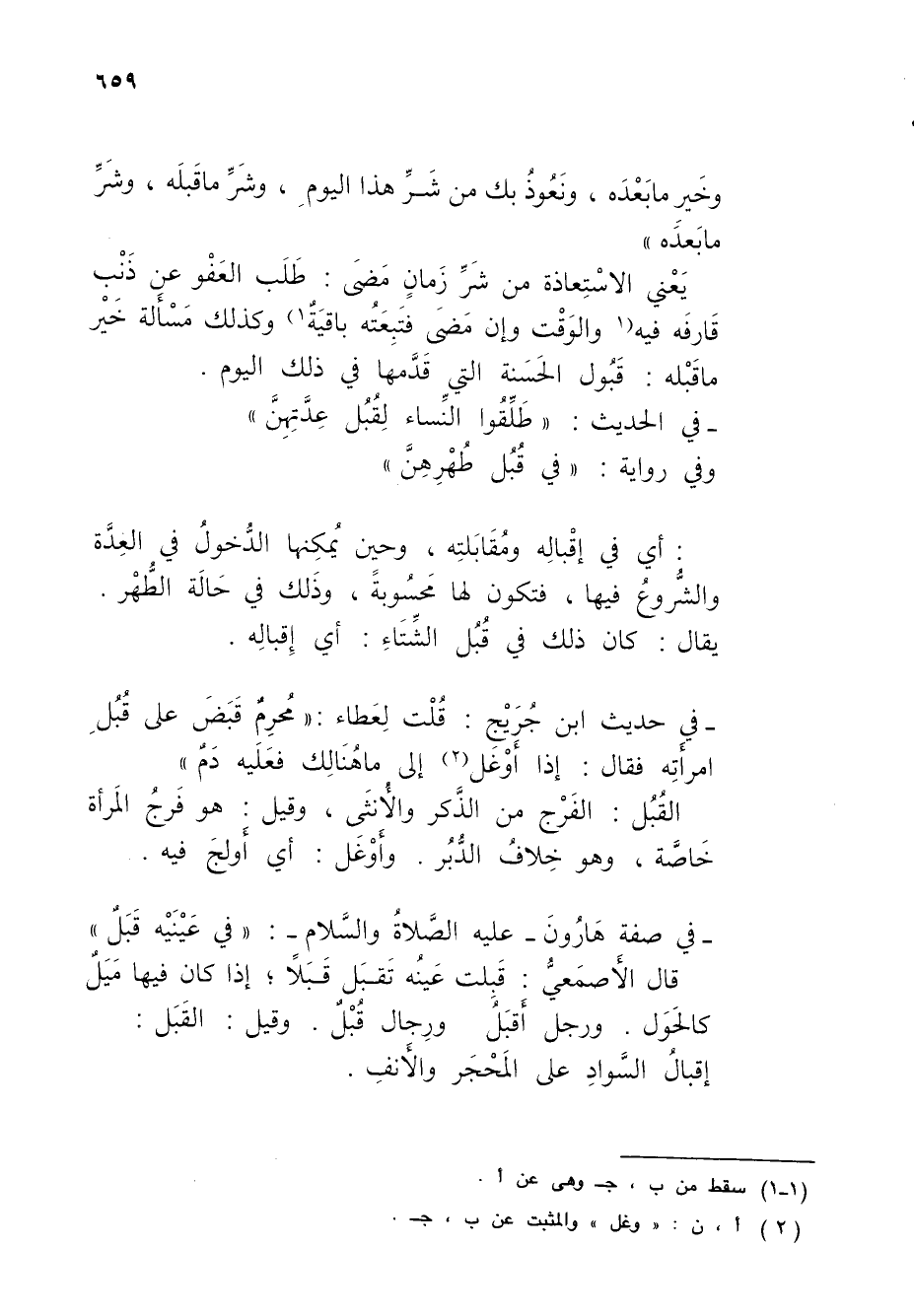 القُبُل: الفَرْج من الذَّكر والأُنثَى، وقيل: هو فَرجُ المَرأة خَاصَّة، وهو خِلافُ الدُّبُر. وأَوْغَل: أي أَولجَ فيه.