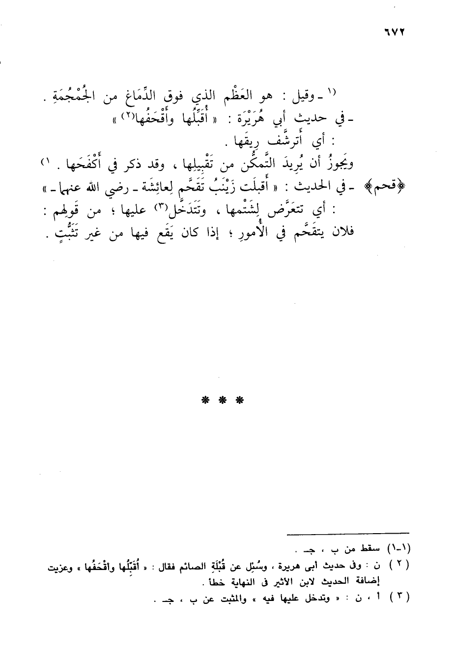 (¬2) ن: وفي حديث أبى هريرة، وسُئِل عن قُبْلَةِ الصائم فقال: "أُقَبِّلُها وأقْحَفُها" وعزيت إضافة الحديث لابن الأثير في النهاية خطأ.