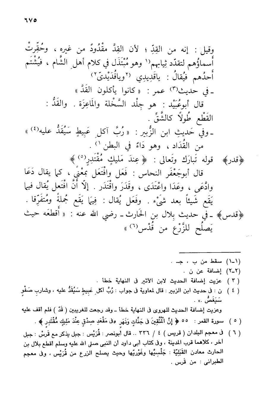 وعزيت إضافة الحديث للهروى في النهاية خطأ - وقد رجعت للغريبين (قَدّ) فلم أقف عليه