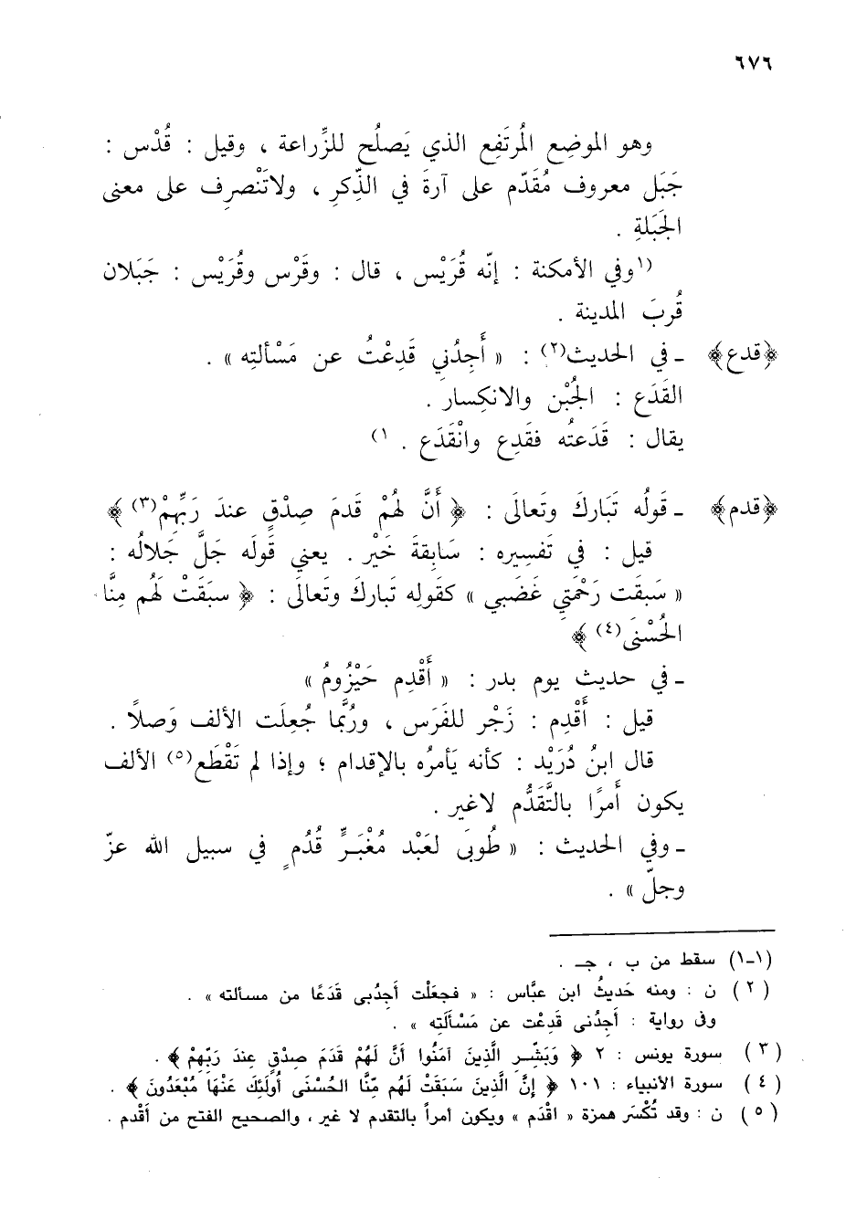 (¬5) ن: وقد تُكْسَر همزة "أقْدَم" ويكون أمراً بالتقدم لا غير، والصحيح الفتح من أَقْدم.