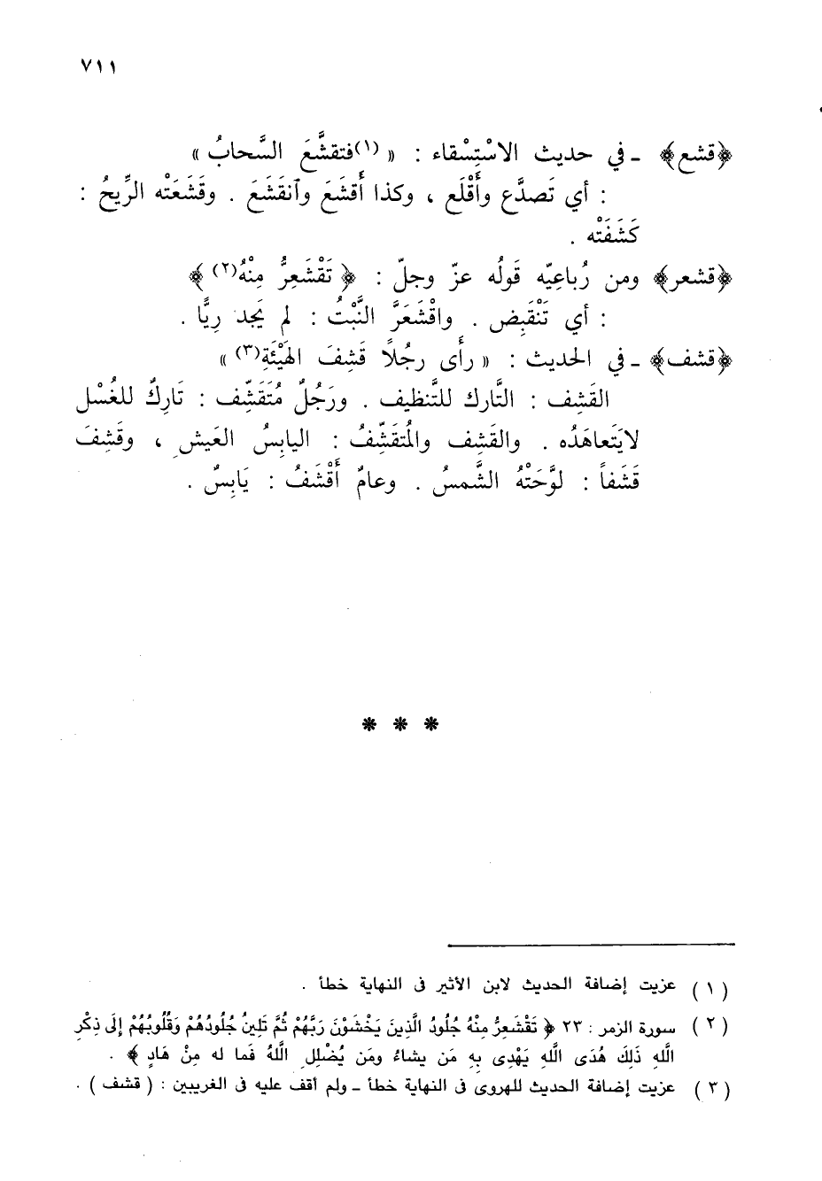 (¬3) عزيت إضافة الحديث للهروى في النهاية خطأ - ولم أقف عليه في الغريبين: (قشف).