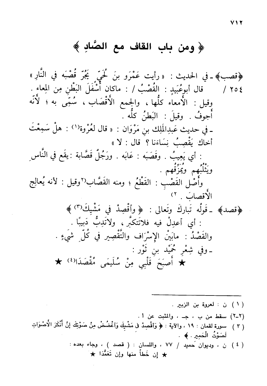 (¬4) ن، وديوان حميد/ 77، واللسان: (قصد)، وجاء بعده: