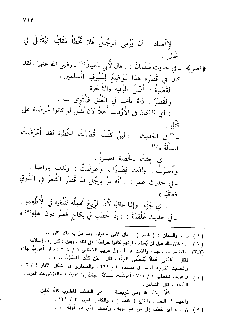 (¬1) ن، واللسان: (قصر): قال لأبي سفيان وقد مرَّ به لقد كان ...