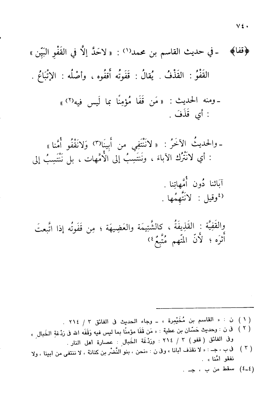 - ومنه الحديث: "مَن قَفَا مُؤمِنًا بما لَيس فيه (¬2) "