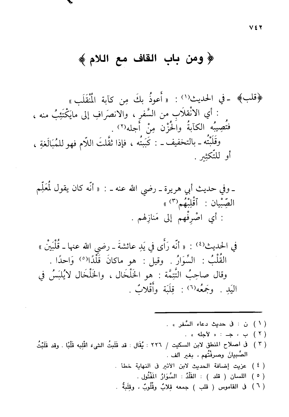 (¬6) في القاموس (قلب) جمعه قِلابٌ وقُلُوبٌ، وقِلَبةٌ.
