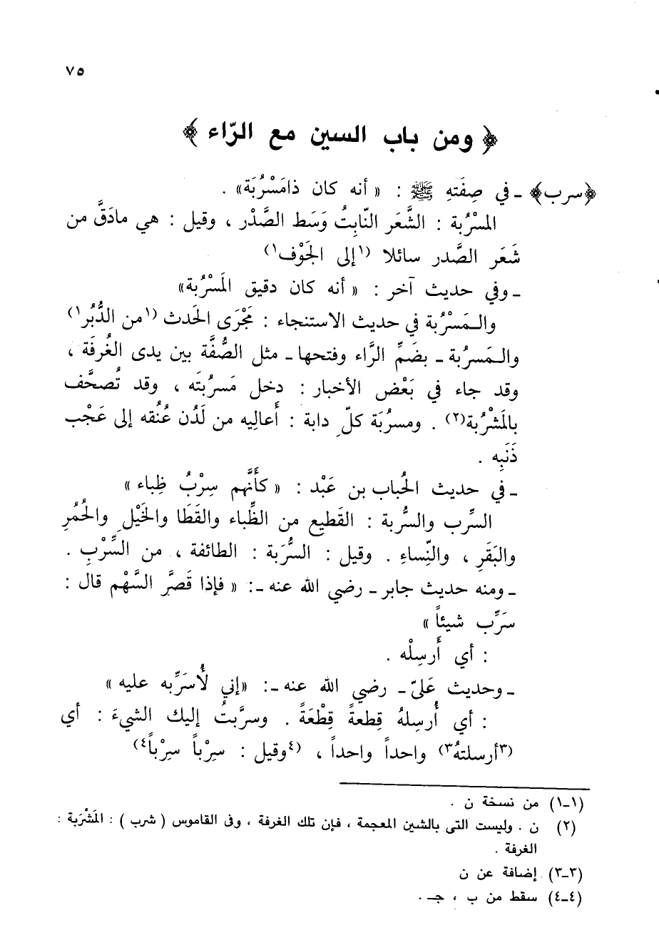 (سرب) - في صِفَتهِ - صلى الله عليه وسلم -: "أنه كان ذا مَسْرُبَة".