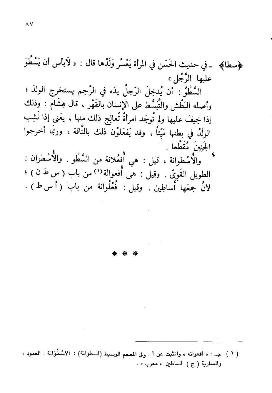 (سطا) - في حديث الحَسَن في المرأة يَعْسُر وَلَدُها قال: "لاَ بأس أن يَسْطُوَ عليها الرَّجُل"