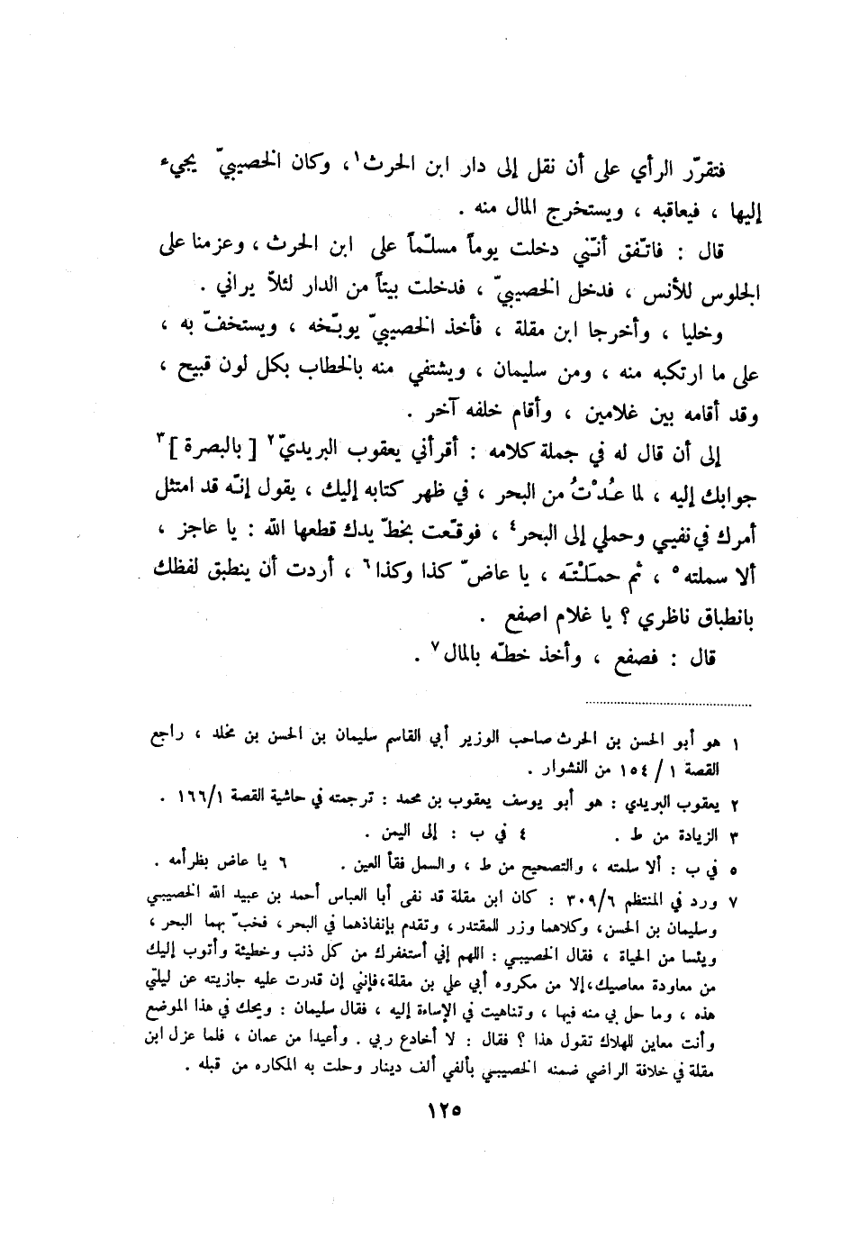 قال: فاتّفق أنّني دخلت يوما مسلّما على ابن الحرث، وعزمنا على الجلوس للأنس، فدخل الخصيبيّ، فدخلت بيتا من الدار لئلّا يراني.