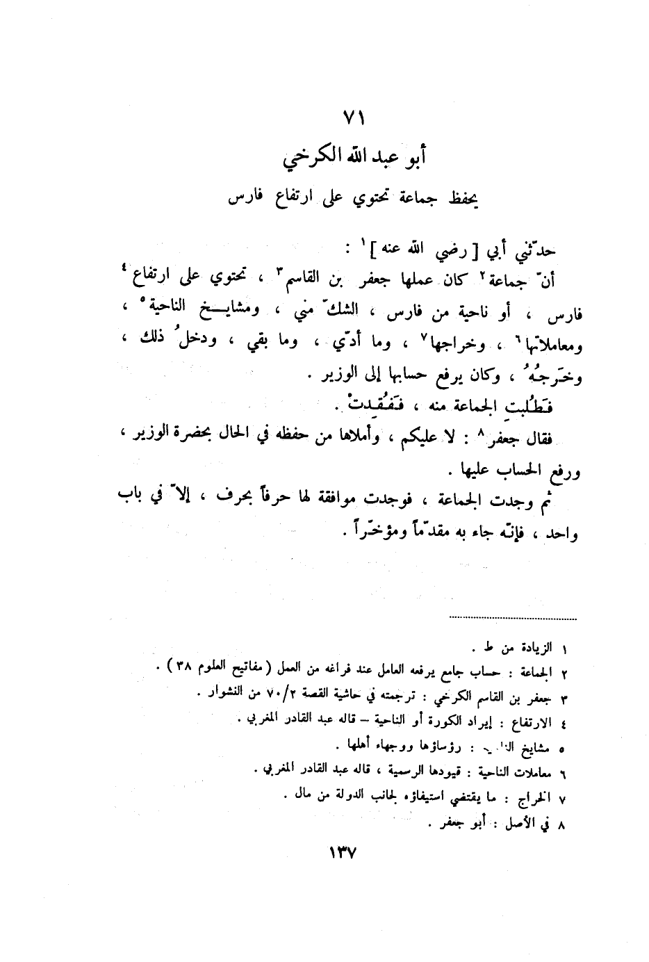 71 أبو عبد الله الكرخي يحفظ جماعة تحتوي على ارتفاع فارس