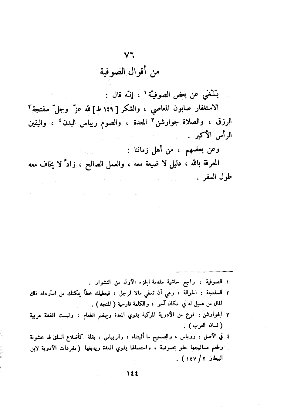 بلغني عن بعض الصوفيّة «1» ، إنّه قال: