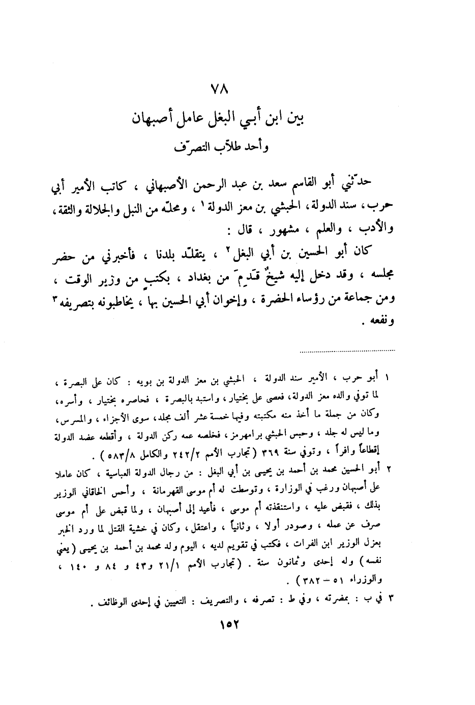 78 بين ابن أبي البغل عامل أصبهان وأحد طلّاب التصرّف