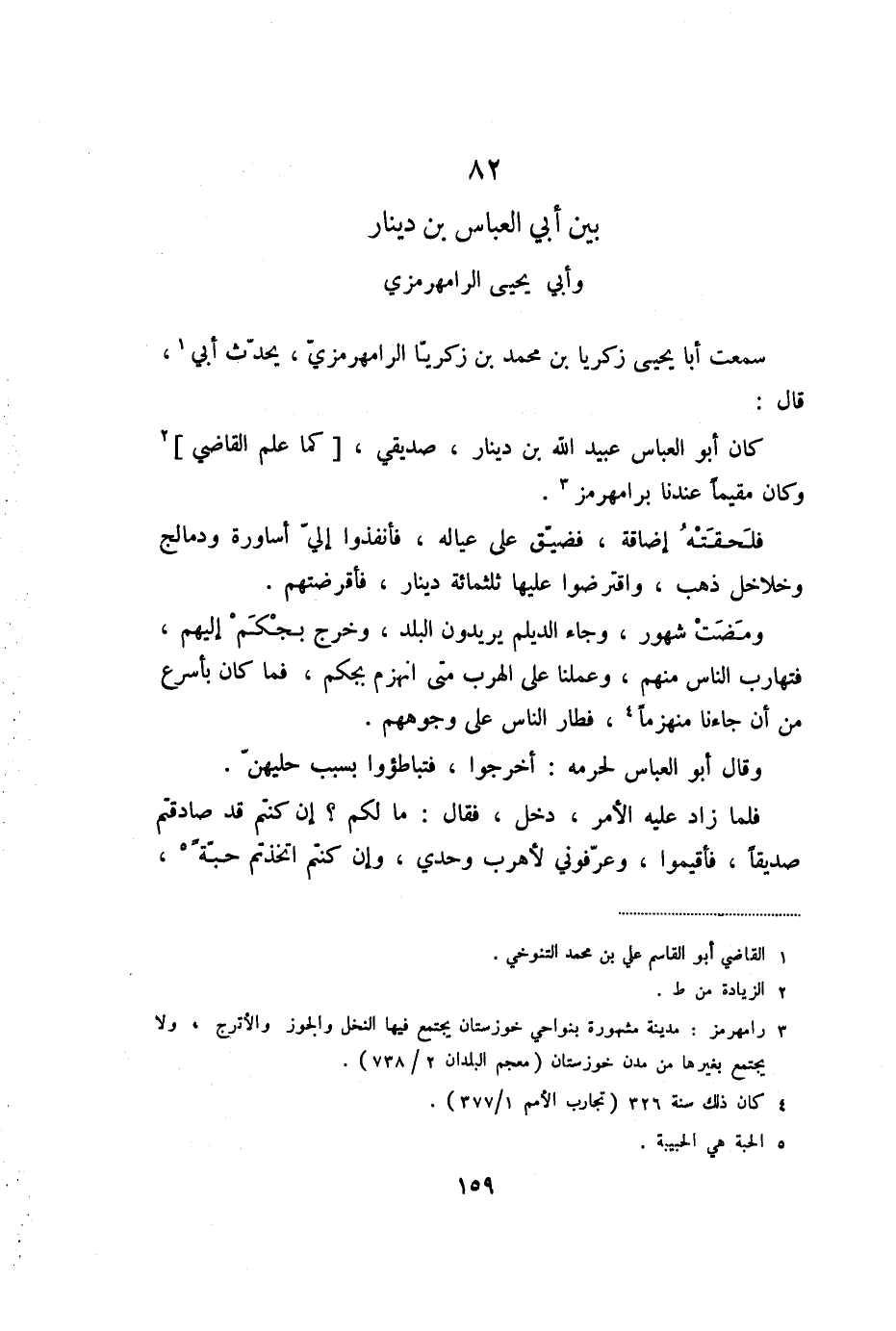 82 بين أبي العباس بن دينار وأبي يحيى الرامهرمزي